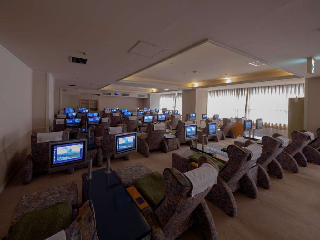 6階は暗めのリクライニング。